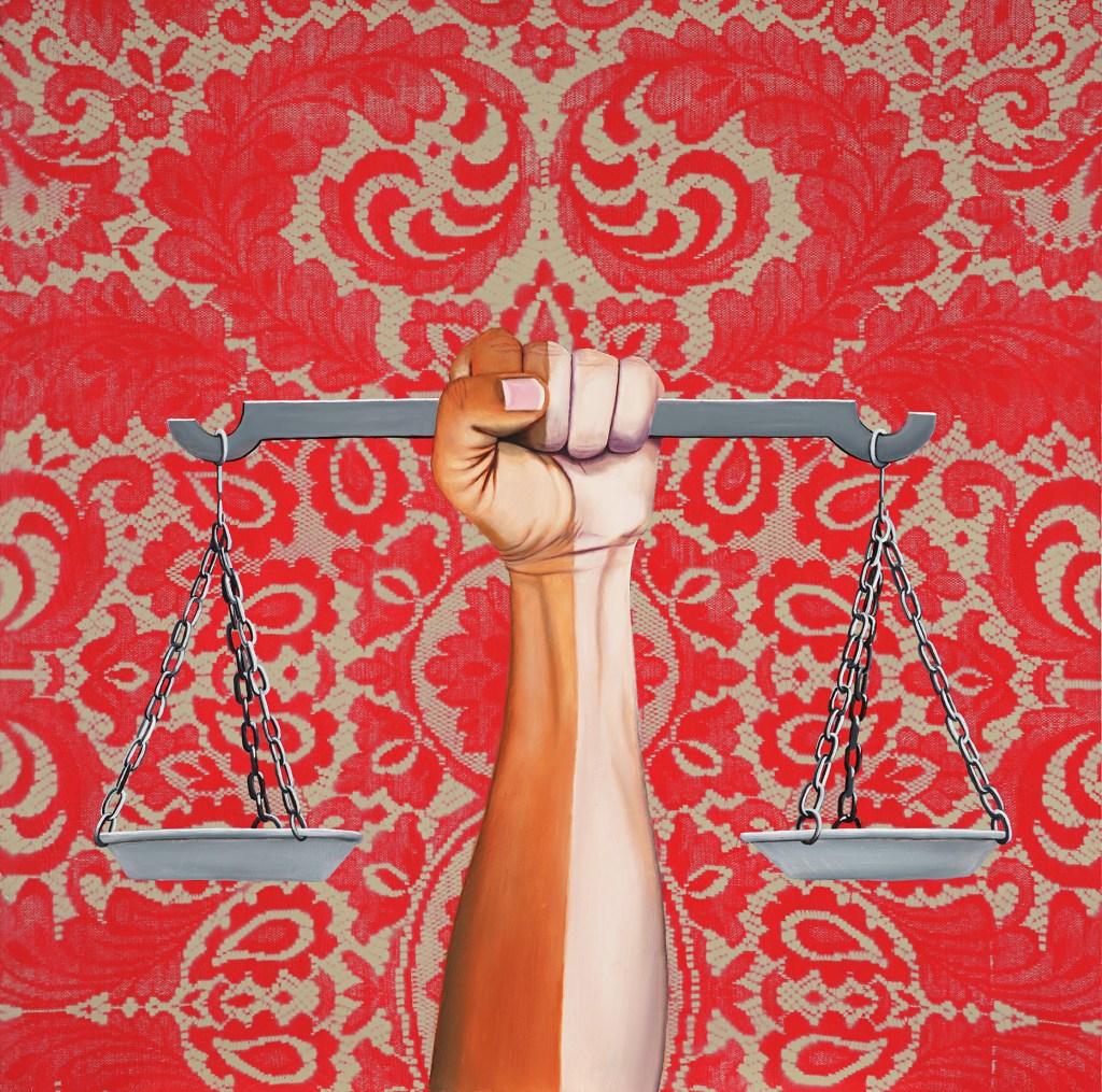 MANIFEST EQUALITY • oil, acrylic, and spray paint on wood panel • 30″ by 30″