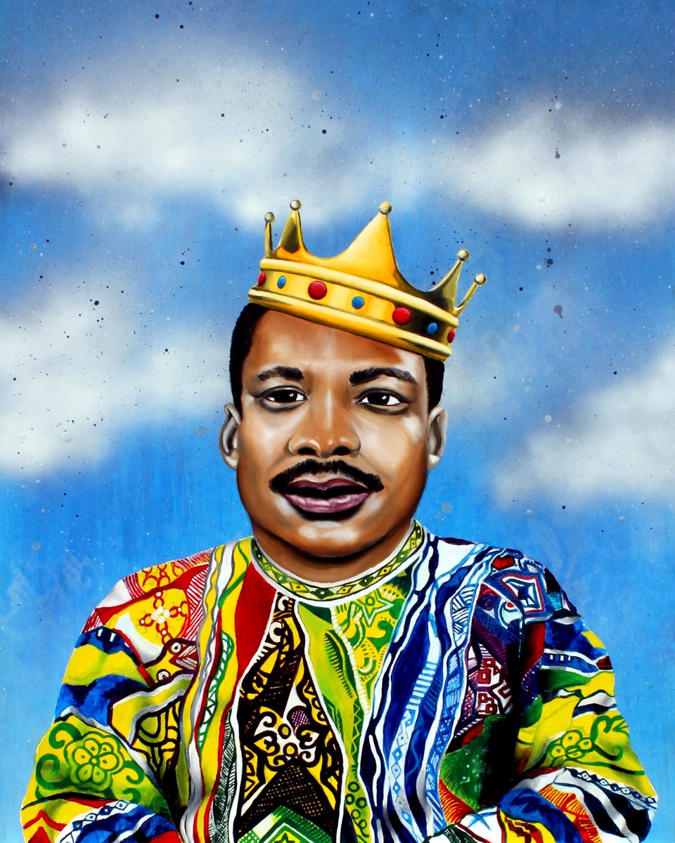 I painted this piece a few years ago. The idea is to show the juxtaposition of Martin Luther King and Notorious Big (biggie smalls). It started with the comparison and similarities of their uses of the Dr. King’s “I have a dream” speech and the beginning verse of Notorious Big’s song Juicy, “It was all a dream, I use to read word up magazine”. It’s a fun mash up of the two icons but also carries a heavy racial injustice meaning because they both had their life struggles and used their voice to combat it. Unfortunately we are still dealing with these issues today.