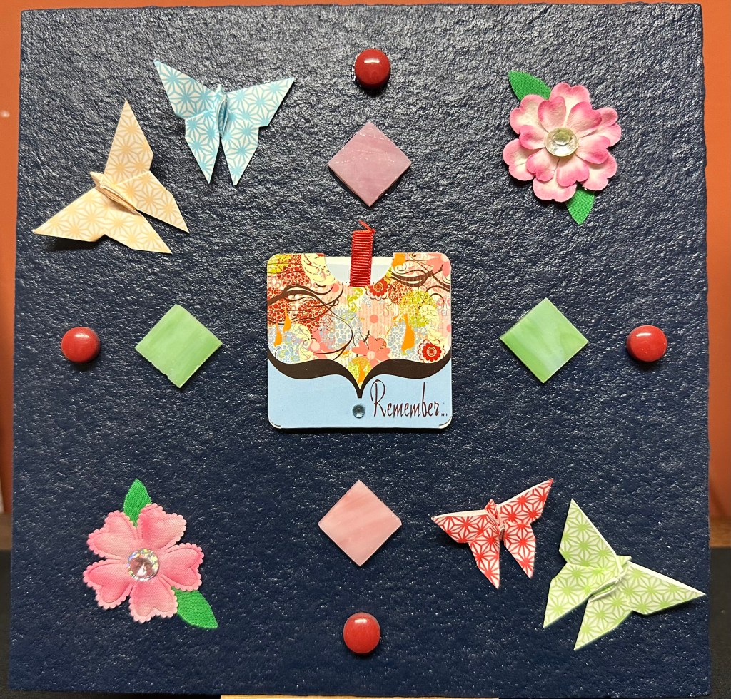 “Remember” • Sharon Ose • 9×9 inches • Multimedia on Tile • $75