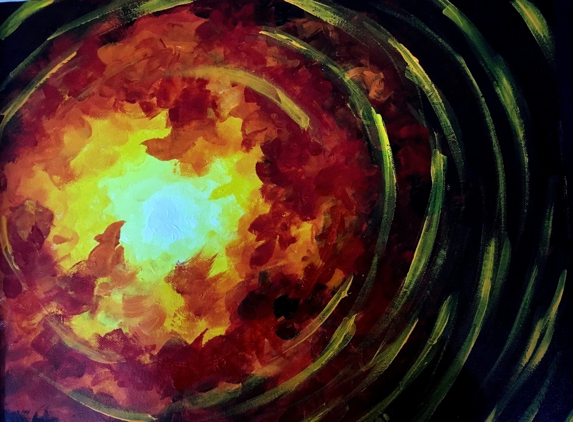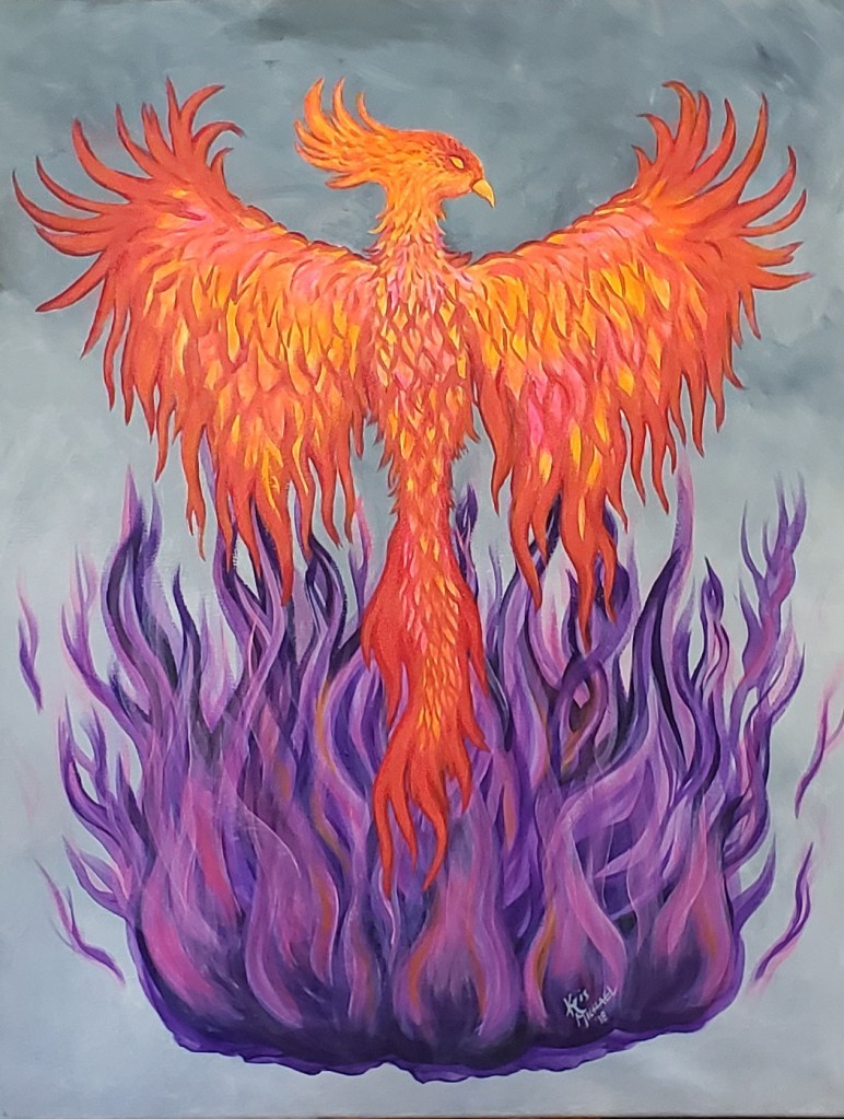 Not for sale. This Phoenix acrylic painting is a representation of overcoming obstacles in our lives. The Phoenix bird is very special to Kris, having been born and raised in this amazing city. Kris’ Phoenix painting also exists in two bedroom murals at Ryan House, a very unique hospice/respite care facility for children.