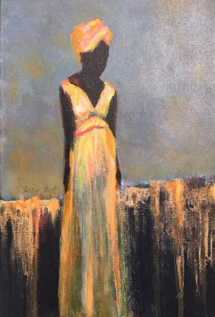 I embrace reconnecting to my childhood in this painting. Fond childhood memories flood my emotions when I focus on this finished painting. The swing is a symbol of my inner child wanting to climb in that swing and daydream for awhile