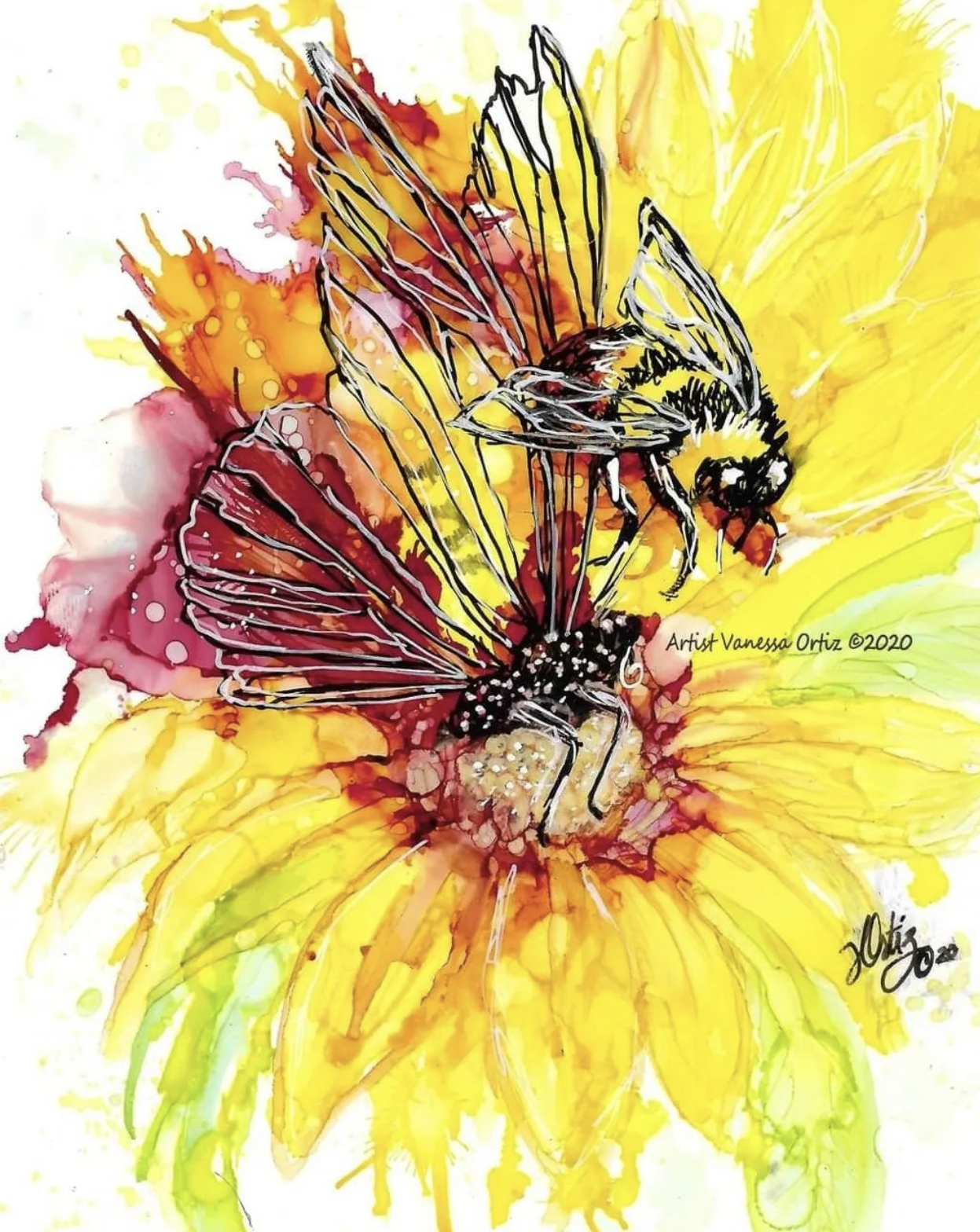 Above: Sunflower art by Millet House artist Vanessa Ortiz