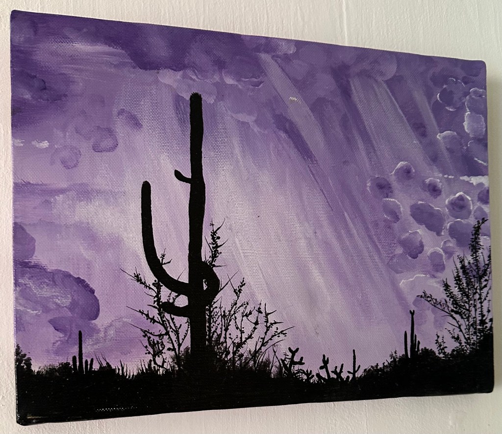 “Purple Rain” / Tara Kosciukiewicz / Acrylic on Canvas / 9″x12″ / $100