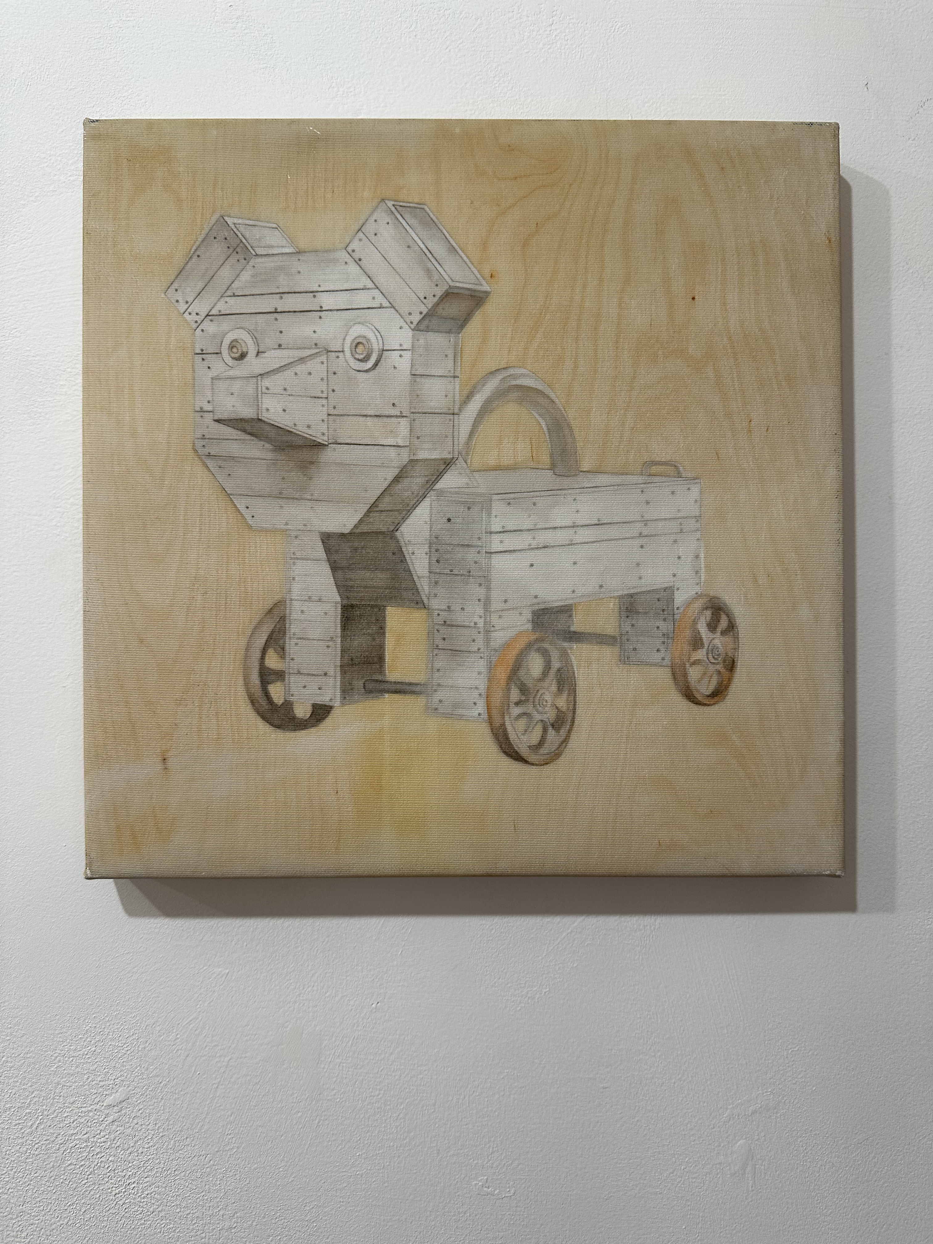 Note: For the online version of this exhibit, we will be using photos of the art taken as they hang on the wall. This is to discourage copying. Losing one’s work in such a way can be heartbreaking for an artist. For the same reason, a number of the paintings have been photographed at an angle.